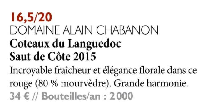 « Ce 2016 possède une classe naturelle et se place parmi les grandes bouteilles du secteur des Terrasses du Larzac. »