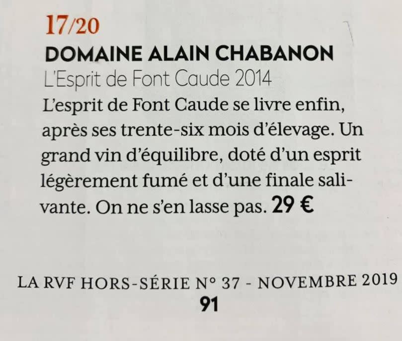 « Peu de domaines de la région offrent une gamme aussi aboutie et précise. Nous saluons la capacité de vieillissement des vins, qui a peu d’équivalent. […] L’ensemble de la gamme se distingue par sa richesse de goût et son originalité, ce qui place le domaine parmi l’élite la plus restreinte de la région. […] On sent dans chaque vin un profond travail de réflexion, et chaque cuvée affirme son identité propre. »