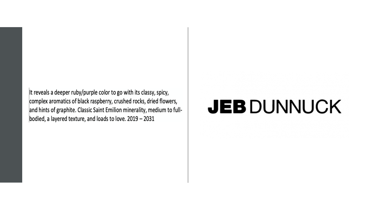 “Classic Saint Emilion minerality, medium to full-bodied, a layered texture, and loads to love.”