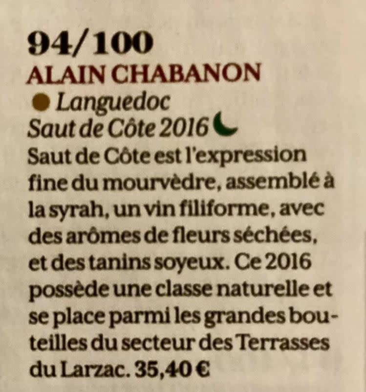 « Ce 2016 possède une classe naturelle et se place parmi les grandes bouteilles du secteur des Terrasses du Larzac. »